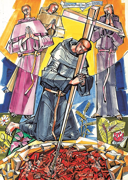 Il primo autore che scrisse sulla vita e sulla devozione verso il B. Guglielmo fu il suo concittadino Nicola Bertran nel De Tholosanorum gestis, stampato nel 1515, dove raccolse tradizioni tolosane e molto probabilmente qualche relazione scritta. Secondo questa fonte, Guglielmo nacque a Tolosa in Francia intorno al 1297 in seno a una nobile famiglia e all’età di diciannove anni entrò tra gli agostiniani della sua città natale. Inviato a Parigi per proseguire gli studi, ottenne il titolo di lettore in teologia. Al ritorno nella sua Provincia di origine, venne incaricato della predicazione e presto ottenne grande fama come oratore, direttore di anime, conoscitore dei cuori e promotore della devozione alle anime del purgatorio. La Vita riporta che la sua attività preferita era «pregare o contemplare o parlare di Dio»; descrive il suo zelo, i suoi digiuni rigorosi e i combattimenti col demonio, di persona e in qualità di esorcista. Riferisce anche grandi e svariati miracoli compiuti prima e dopo la morte. Eccetto un breve periodo in cui fu priore del convento di Pamiers, sembra che la maggior parte della sua vita dopo il rientro dallo studio parigino si sia svolta nel convento tolosano nel quartiere di Saint-Etienne, dove in quei giorni, esattamente nel 1341, venne celebrato il capitolo generale dell’Ordine. Morì a Tolosa in odore di santità nel 1369. Fu sepolto nel cimitero conventuale, come si era soliti fare, ma pochi giorni più tardi, considerata la venerazione del popolo, memore delle sue virtù e riconoscente per le grazie ottenute tramite la sua intercessione, fu necessario trasferirlo all’interno della chiesa in un luogo più degno e accessibile alla devozione dei fedeli. Leone XIII ne confermò il culto nel 1893.