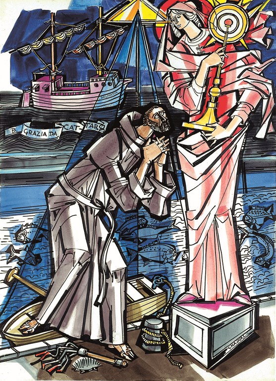 Il beato Grazia venne alla luce a Mulla, un piccolo villaggio nella pittoresca baia di Cataro, oggi Kotor, sulle coste dalmate, allora il centro più importante del golfo e della diocesi. Nell’anno 1423 Kotor si era sottomessa liberamente alla signoria veneziana e aveva così conservato l’indipendenza. La lunga egemonia dei veneziani si rispecchia ancora nell’architettura della città e, grazie al legame con la Serenissima, era diventata un porto vivace e ricco di commercianti, marinai e pescatori. Grazia era un uomo di mare e tale rimase fino all’età di trent’anni. In uno dei suoi viaggi capitò in una chiesa di Venezia e venne conquistato da una predica dell’agostiniano Simone da Camerino, tanto che decise di entrare nell’Ordine. Fu accettato nel convento di Monte Ortone nelle vicinanze di Padova come fratello converso. Questo convento era la culla di una delle nuove congregazioni dell’Ordine, formatosi allora in Italia ed insieme alle altre si distingueva per il grande zelo e per la disciplina. Esso fu accettato nel 1433 dal Priore generale Gerardo da Rimini e annesso alla provincia del distretto di Treviso, con la condizione che avrebbe ospitato solo quei confratelli fermamente fedeli agli ideali della riforma dell’Ordine. Fratello Grazia, che lavorava in giardino, si guadagnò presto la stima e la riconoscenza dell’intera comunità. Quando altri due conventi della riforma entrarono nell’Ordine, la congregazione venne eretta ufficialmente. Tra il 1472 e il 1474 Simone da Camerino appare nei registri generali, come Vicario. Dopo questi anni Grazia venne mandato a S. Cristoforo a Venezia e in questa città morì l’8 novembre 1508. Al di fuori di queste poche notizie e del culto che ancora oggi gli viene tributato nell’Ordine e nel suo paese d’origine, non sappiamo altro di Grazia. La biografia in lingua italiana del Lazzerini (1643) e quella latina di Eliseo di Gesù e Maria (1677) non hanno fondamenti documentati. Ma proprio i racconti sulla sua austerità di vita e la potenza prodigiosa della sua intercessione danno testimonianza della sua fama di santità. Il culto venne ratificato nel 1889 da Leone XIII. Le sue reliquie riposano nella Chiesa di Mulla (Muo) vicino a Kotor.