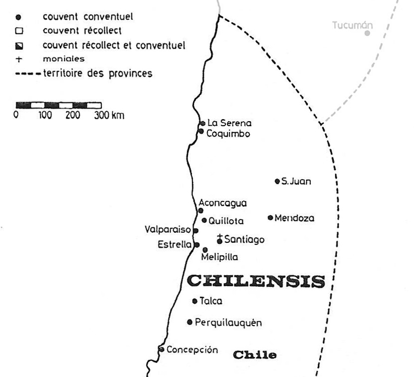 Gli agostiniani arrivano in Cile dal Perù, come opera evangelizzatrice della provincia di Nostra Signora della Grazia, i cui religiosi, invitati fortemente da Filippo II, decidono di inviare nel 1595 un gruppo di missionari all’impoverito e bellicoso regno del Cile. In questo paese gli agostiniani giungono alla fine del XVI secolo. Li avevano preceduti i francescani, mercenari e gesuiti. Lì si stabiliscono nel marzo del 1595, fondando convento e chiesa sotto il titolo di Nostra Signora della Grazia, nello stesso luogo dove si trovano attualmente. Era superiore Fr. Cristóbal de Vera, in compagnia dei sacerdoti Fr. Pedro de Torres, Fr. Francisco Díaz e Fr. Francisco de Hervás, così come i professi Fr. Juan de Sotomayor e Fr. Agustín Ramírez. A pochi mesi da questa prima fondazione, costruiscono un altro convento, nell’agosto del 1595, a 500 Km. al nord di Santiago, La Serena. Il fatto che gli agostiniani hanno fondato in Cile alla fine del secolo XVI, dopo gli altri ordini religiosi, ha fatto in modo che le vocazioni native preferissero il nostro Ordine agli altri, anche se tra gli agostiniani non c’era ancora la lotta, a volte accanita tra i peninsulari e i nativi che c’era nelle altre comunità religiose. In poco lasso di tempo i nativi furono la maggioranza tra gli agostiniani, a tal punto che in questa provincia non ci fu mai il sistema dell’alternativa per il governo. L’essere la maggioranza e il desiderio di autogovernarsi, portò i nativi ad anelare ben presto ad una separazione dalla provincia peruviana. Nel 1599, appena a quattro anni di essersi stabiliti in Cile, gli agostiniani cercarono di essere indipendenti. In effetti, il priore generale Alessandro Mancini, concesse il decreto di separazione. Senza dubbio questo documento rimase nell’archivio provinciale di Lima per più di dieci anni senza essere conosciuto dai religiosi di Santiago. Quando lo seppero, finalmente celebrarono il capitolo, nel quale risultò eletto come provinciale il P. Bartolomé de Montoro. Nel 1612 il nuovo generale dell’Ordine, Fr. Giovanni Battista di Asti, revocò il decreto di indipendenza del suo predecessore, dichiarando nulli tutti gli atti realizzati, incluso il capitolo provinciale. Nel 1612 il nuovo generale dell’Ordine, P. Nicola di Sant’Angelo, decretò che la provincia del Cile potesse celebrare capitoli ed eleggere provinciali in tutta libertà, ma questi atti dovevano essere confermati dai provinciali del Perù. Finalmente, il 16 maggio del 1627, il priore generale Girolamo de Ghettis, dettò il decreto che creava in forma definitiva la nuova provincia agostiniana. Per quanto riguarda la storia del Cile, gli agostiniani arrivano a fondare 32 conventi e residenze e i principali erano: Santiago (1595), La Serena (1595- 2002), Concepción (1751), San Juan (1639-1876), Mendoza (1657-1835), Talca (1619-1969), Valparaíso (1627-1876), Santiago-Cañada (1660-1906), San Nicolás de la Viña (Santiago, 1601-1640), Melipilla (1746-1999), La Estrella (1659-1888), San Fernando (1888), Liceo-Santiago (1964), Santo Tomás de Villanueva-Santiago (1964), Villa San Pedro-Concepción (1966). Il lavoro che si è sviluppato in Cile è stato principalmente urbano e dottrinale, come accadde per il convento di San Nicolás de la Viña, fondato per servire una dottrina degli indios nella zona orientale di Santiago. Nella valle del fiume Petorca, dalla cordigliera al mare, si estese la missione di San Nicolás del Valle, che fu fondata nel 1608. Si sono distinti per il loro zelo nell’evangelizzazione degli indigeni, i PP. Manuel de Mendoza, Bernardo de Toro Mazote, Bartolomé Lepe Juan de Castilla. Comunque, in senso stretto, considerata l’area geografica occupata dagli agostiniani, composta nella sua maggior parte da zone pacifiche, dobbiamo accettare il fatto che furono specialmente dei teologi. Così, nelle valli di Aconcagua, dal 1603 lavorarono i padri Diego e Andrés de Elossu e Juan Jufré de Loaisa. Tutta la zona con centro a Talca, fu evangelizzata dagli agostiniani dal 1619 in poi. I tentativi di missioni vive, nei conventi di Millapoa (1595-1599), Fuerte de Buena Esperanza (1707-1708) e Valdivia (1596-1599), furono distrutti subito dopo essere stati fondati durante gli ammutinamenti degli indigeni tra coloro che pretendevano fare i missionari. Già alla metà del XVII secolo, in ogni capitolo provinciale, vennero nominati predicatori e confessori di indios, che parlavano il mapudungún. Gradualmente, man mano che si giunge al secolo XVIII, viene abbandonato il lavoro di evangelizzazione, a causa soprattutto delle nuove politiche dei Borboni, e i nostri padri si stabilirono nei conventi delle città. Qui, gli agostiniani si preoccuparono di curare spiritualmente tutti gli strati della società coloniale. Nel loro convento di Santiago stabiliscono la confraternita della Candelora, per i neri, mulatti e indios (1596). Questa confraternita, che in Cile rappresenta la prima preoccupazione pastorale verso gli afroamericani, durò fino alla fine del XVIII secolo. Per gli spagnoli e gli indigeni, al tempo che fondavano la precedente, gli agostiniani fondarono la confraternita della Nostra Signora della Consolazione. Da allora, una dozzina di altre associazioni pie danno testimonianza della grande attività indefessa in questo senso. Nel secolo XVIII il P. José de Aragón e Salazar, fondò la Scuola di Cristo nel convento di Santiago. Già nel 1738 la scuola era organizzata, poiché in uno scritto del 25 ottobre dello stesso anno, il religioso viene chiamato reggente, fondatore, prefetto e cappellano della santa scuola di Cristo. Fu questo un movimento spirituale di straordinaria stabilità tra i fedeli di Santiago. Si sviluppavano le riunioni al cadere della notte. Allora, congregati i devoti nella chiesa di S. Agostino, il direttore svolgeva il tema di una considerazione, con prodigioso dominio della parola. Subito dopo, consegnava alla gente i punti che dovevano meditare, e ver