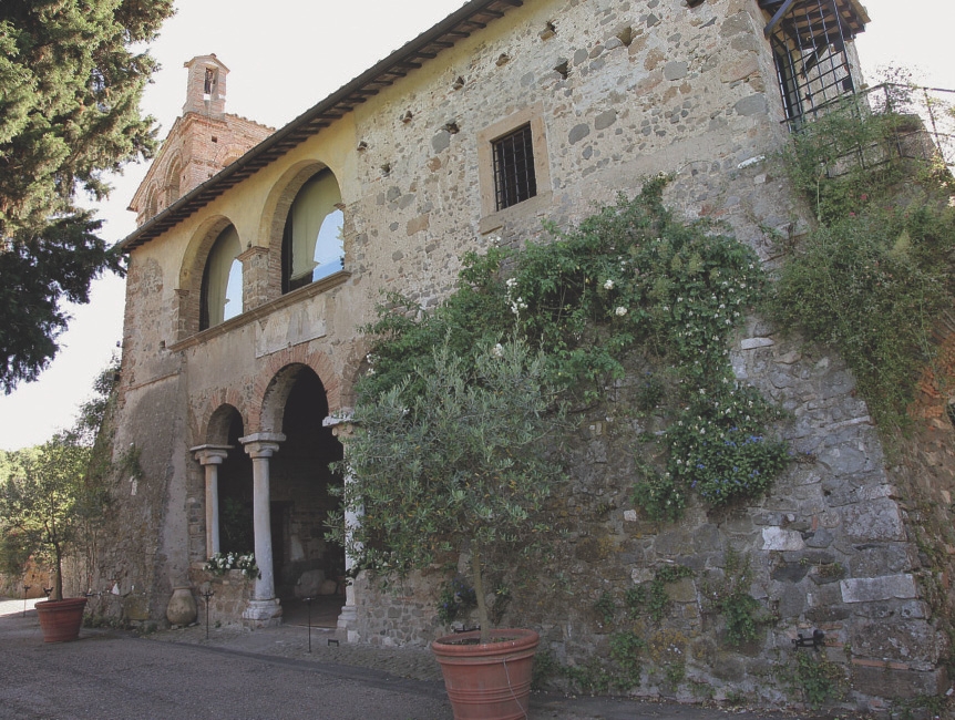 Come si è fatto cenno prima, durante i lavori emersero diversi reperti archeologici che il Conte Sanminiatelli fece sistemare seguendo un criterio cronologico: i pezzi di epoca classica furono collocati nel portico esterno, mentre quelli medievali, più strettamente pertinenti all'edificio, vennero sistemati all'interno.