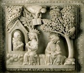 Nel lato di sinistra sono scolpite le virtù dell'obbedienza e della castità, poi si riconoscono i Santi Stefano, Paolo l'Eremita e Lorenzo. Al centro San Simpliciano e Sant'Ambrogio assistono alla morte di Agostino. In alto Agostino impartisce una lezione di retorica.